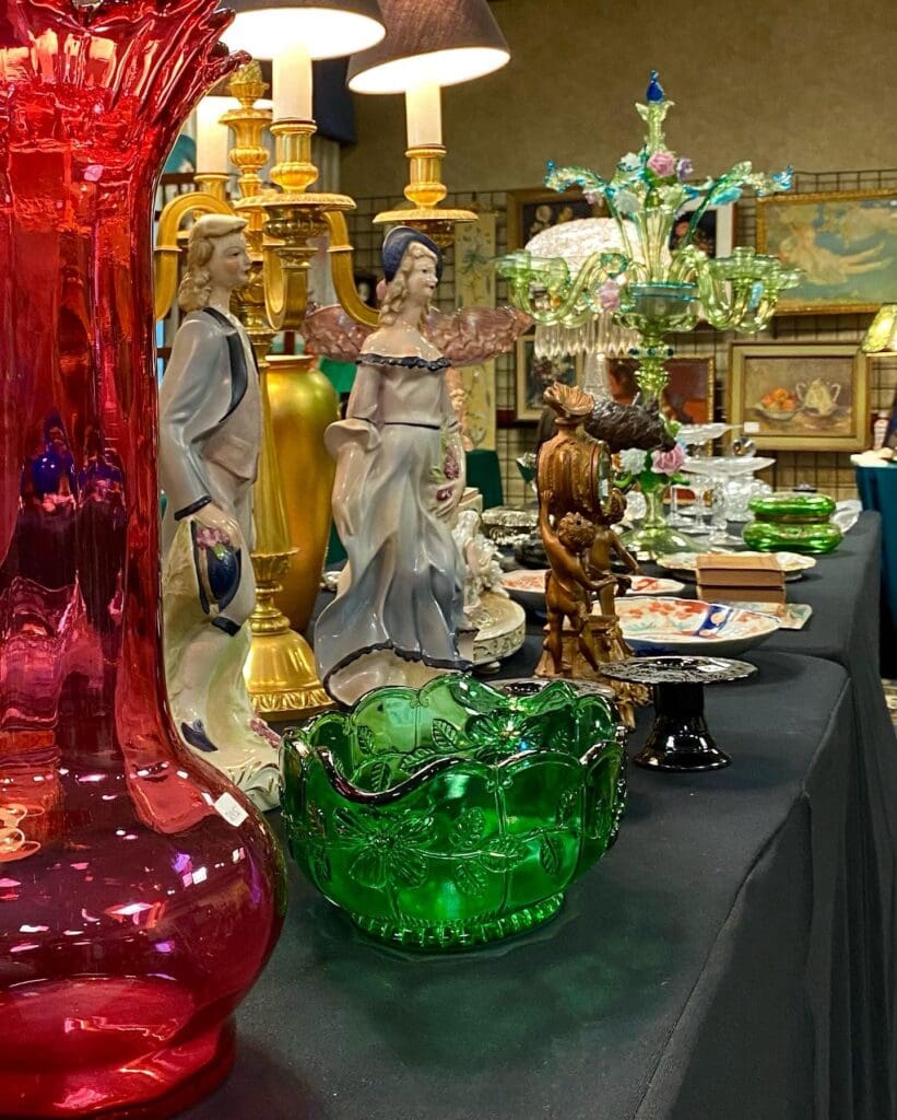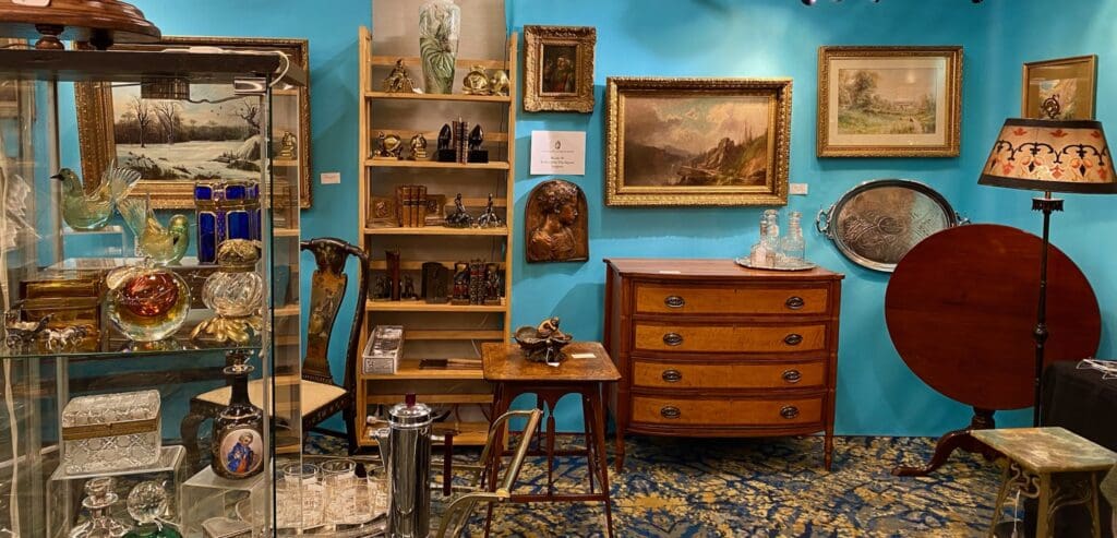 All that glitters is gold! And that is certainly the case for the 50th “Golden Anniversary” Pittsburgh Antiques Show! This annual show is held in Pittsburgh’s South Hills at the Crowne Plaza Pittsburgh South Hotel, Bethel Park, PA 15241 on the weekend of February 15-16, 2025. What fine antique and collectible wonders await the shopper this year? Beautiful artwork, primitives, stoneware, antique bottles, lustrous examples of Early American Pattern and Elegant Glass, Victoriana, Art Deco, Art Nouveau, Mid-Century Modern, stunning examples of European- and American-made art glass, silver and silverplate, antique books, pottery and porcelain, statuary, antique toys, antique holiday, sparkling jewelry, antique lighting, metalwork, and so much more! These are but a few of the many items you will see! With upwards of thirty fine dealers, we know there is a treasure waiting for you!